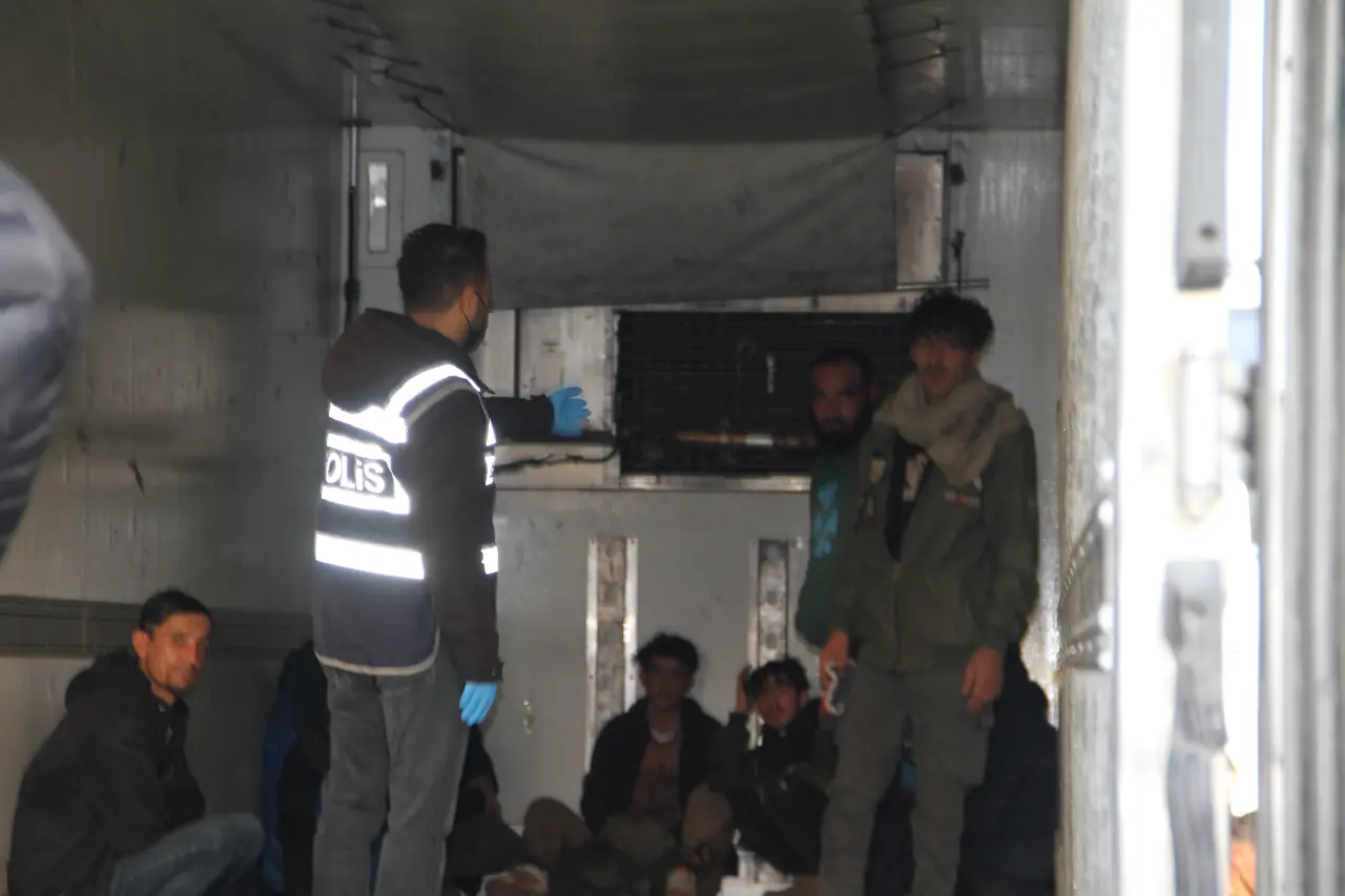 Sivas'ın Suşehri ilçesinde arama yapılan tırın dorsesinde gizlenmiş 28 kaçak göçmen bulundu.