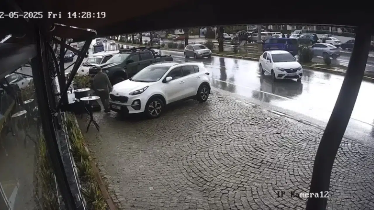 Edinilen bilgiye göre, Konacık Atatürk Bulvarı'nda faaliyet gösteren unlu mamuller işletmesine gelen sürücü, aracını işletme önüne park etti. El freni çekilmeyen otomobil, geri geri giderek Atatürk Bulvarı'na girdi. O sırada bulvarda Turgutreis yönüne giden otomobilin sürücüsü, geri geri gelen aracı fark edip yavaşladı. El freni çekilmeyen otomobil, karayolundaki otomobile hafif şekilde çarptı. Yaşananlar ise güvenlik kamerasına yansıdı.