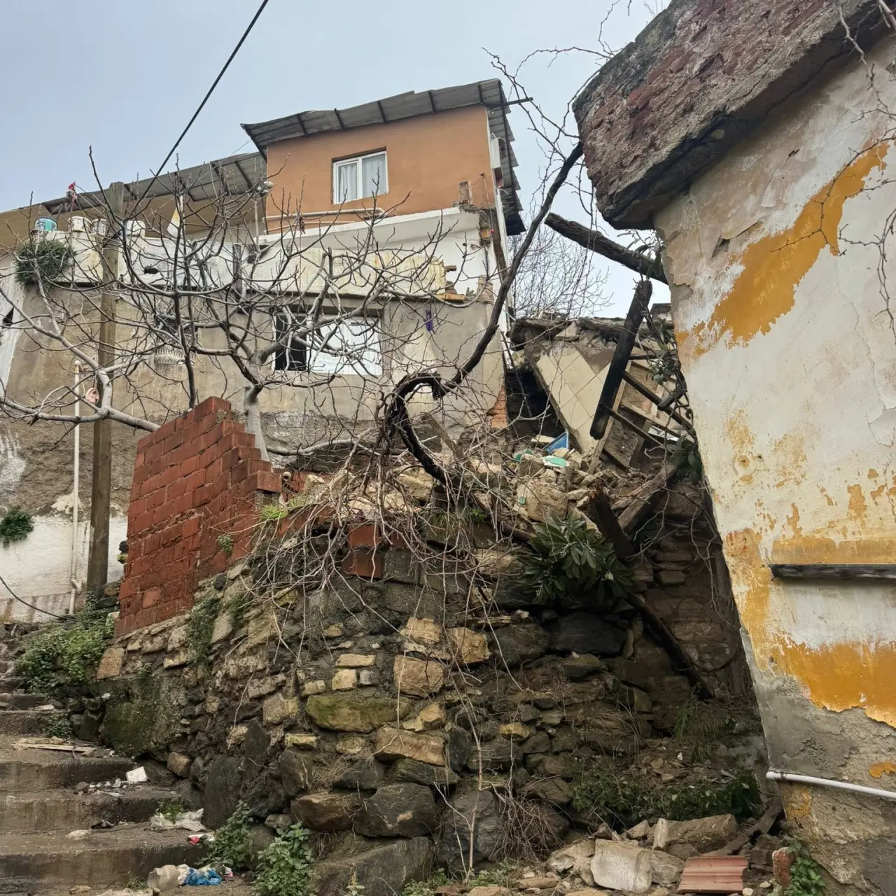 Bir anda duvarın çökmesi sonucu meydana gelen olayın ardından vatandaşlar durumu 112 Acil Çağrı Merkezi'ne bildirdi. İhbar üzerine bölgeye polis, itfaiye ve sağlık ekipleri sevk edildi. Kısa sürede bölgeye gelen ekipler, çevrede güvenlik önlemi alırken, ev tedbir amaçlı olarak tahliye edildi. Şans eser olayda herhangi bir can kaybı ya da yaralanma yaşanmazken, binada detaylı inceleme başlatıldı.
