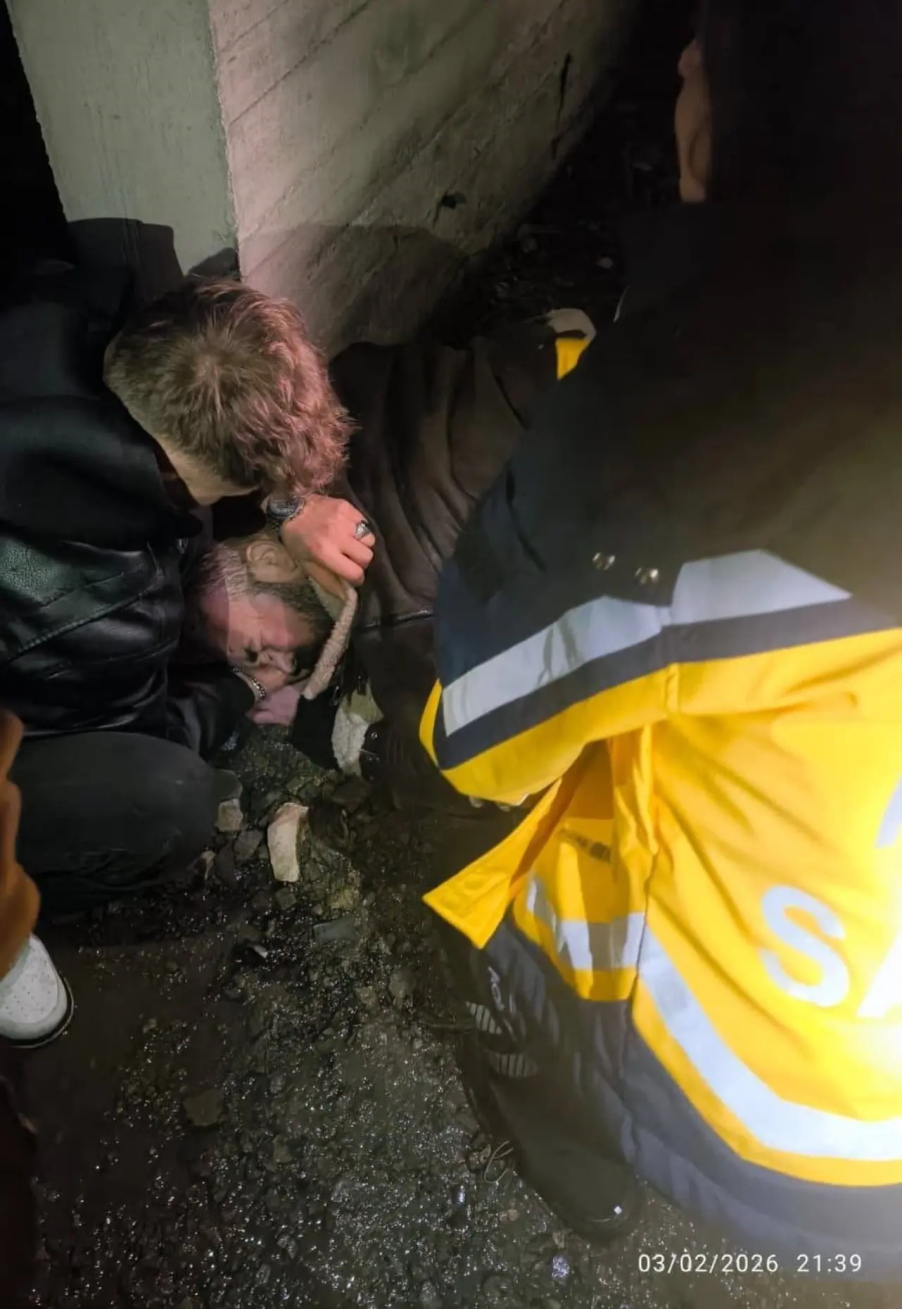 İhbarla adrese sevk edilen itfaiye ekipleri vatandaşı kurtararak sağlık ekiplerine teslim edildi. Sağlık görevlilerinin ilk müdahalesini yaptığı yaralı, ambulansla hastaneye kaldırıldı.