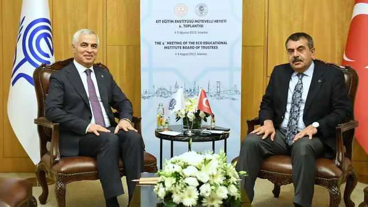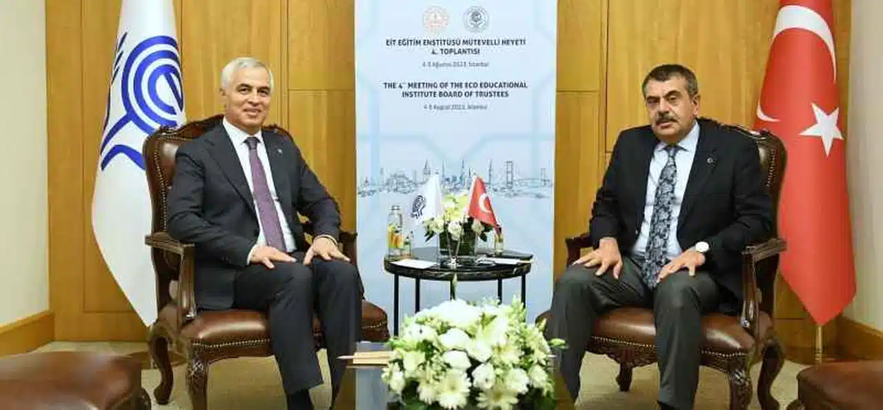 Bakan Tekin, ikili görüşmeler kapsamında EİT Genel Sekreteri Büyükelçi Khusrav Nozırı ile de bir araya geldi. Ekonomik İşbirliği Teşkilatının bölgemizdeki kalkınmanın kurumsallaşmasında büyük bir rol oynadığına dikkati çekerek, Türkiye'nin kurucu üye olması nedeniyle İET'ye büyük önem verdiklerini söyledi. Tekin şöyle devem etti: "EİT coğrafyasının ortak değerlerini buluşturma gayesi taşıyan Enstitünün faaliyetlerinin daha verimli olması için uygun zemini sağlamak ve EİT ile üye ülkelerinin eğitim öğretim alanındaki iş birliğine yönelik çalışmalarını artırmak en büyük temennimizdir. Bu konuda sizlerin vereceği destek de bizim için büyük ehemmiyet taşımaktadır." diye konuştu.