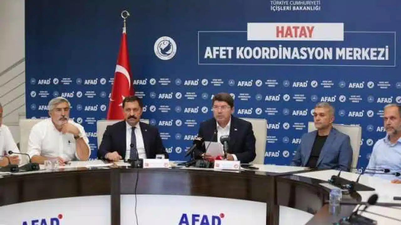 Adalet Bakanı Tunç, Kahramanmaraş merkezli 6 Şubat'taki depremlerden etkilenen Hatay'daki incelemelerinin ardından AFAD Koordinasyon Merkezi'nde gazetecilere açıklamalarda bulundu.