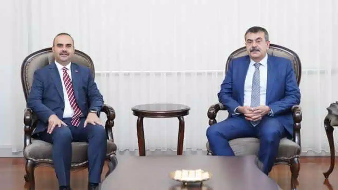Sanayi ve Teknoloji Bakanı Mehmet Fatih Kacır, Millî Eğitim Bakanı Yusuf Tekin'e hayırlı olsun ziyaretinde bulundu. Ziyaretten duyduğu memnuniyeti dile getiren Bakan Tekin, Bakan Mehmet Fatih Kacır'a teşekkür etti.
