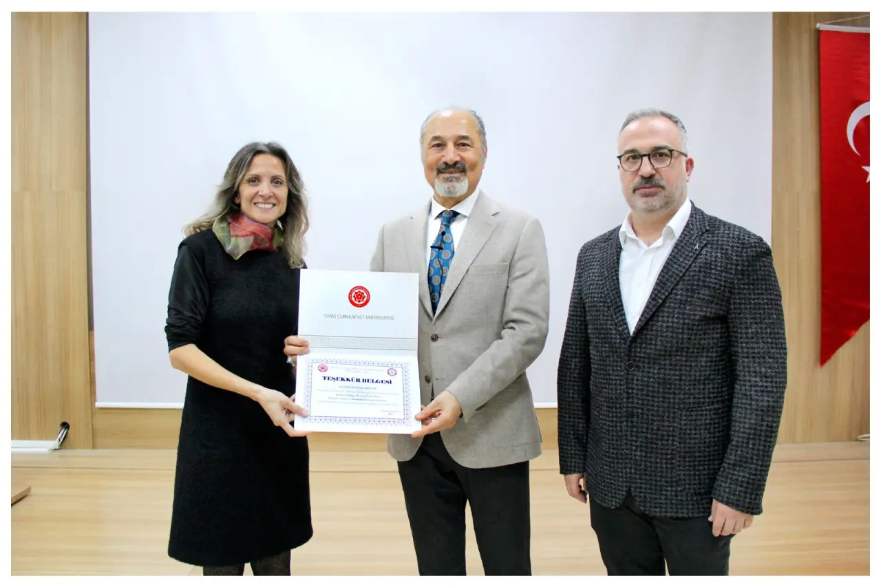 Etkinliğin sonunda Prof. Dr. Ersin Akpınar’a katkılarından dolayı teşekkür belgesi takdim edildi. Toplu fotoğraf çekiminin ardından konferans sona erdi.