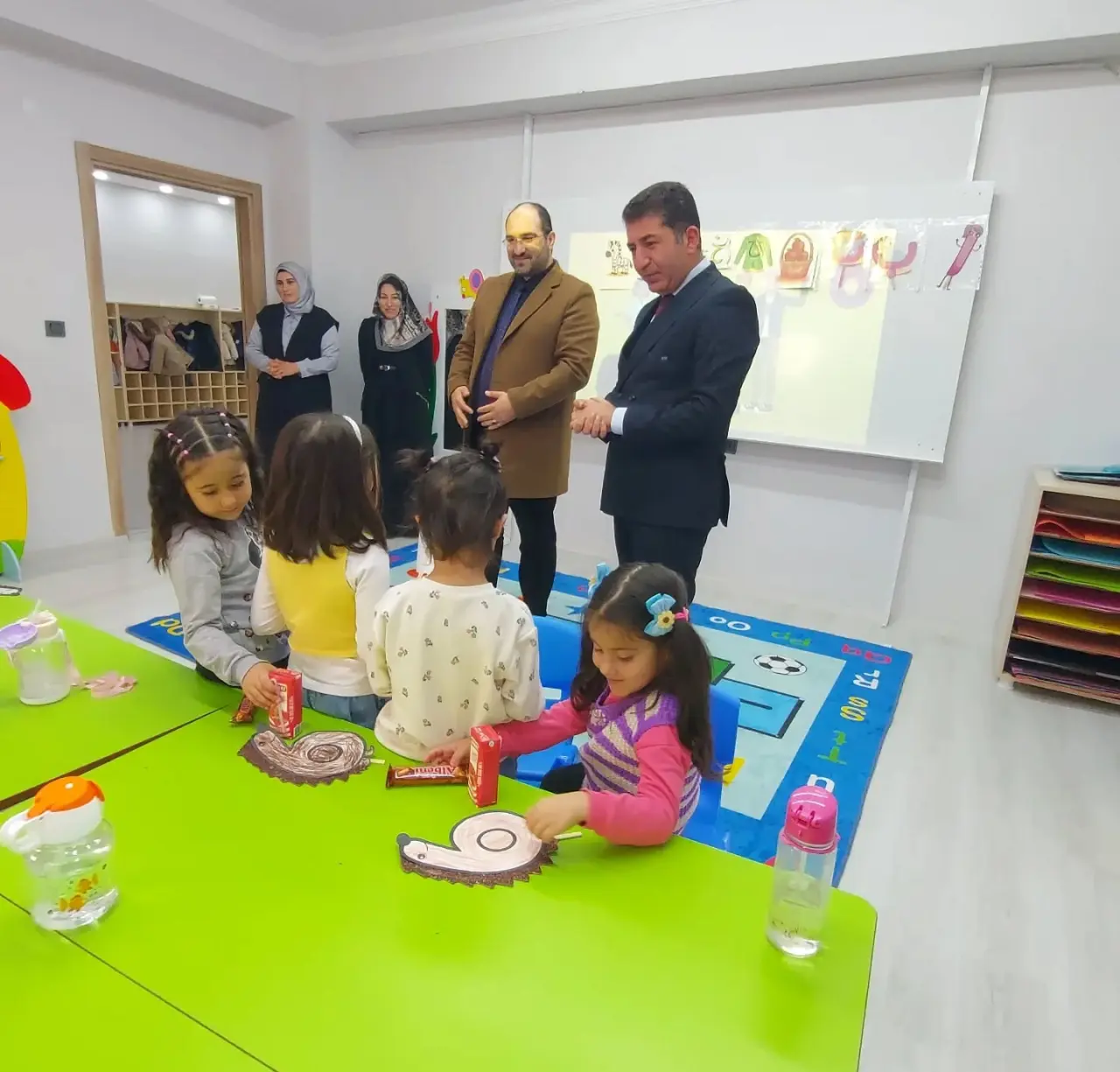 Ziyaret kapsamında miniklere meyve suyu ve çikolata ikram eden Başkan Çelik, İlçe Müftüsü Yunus Güleç ve özveriyle görev yapan tüm öğreticilere ilgilerinden dolayı teşekkür etti. Çelik,