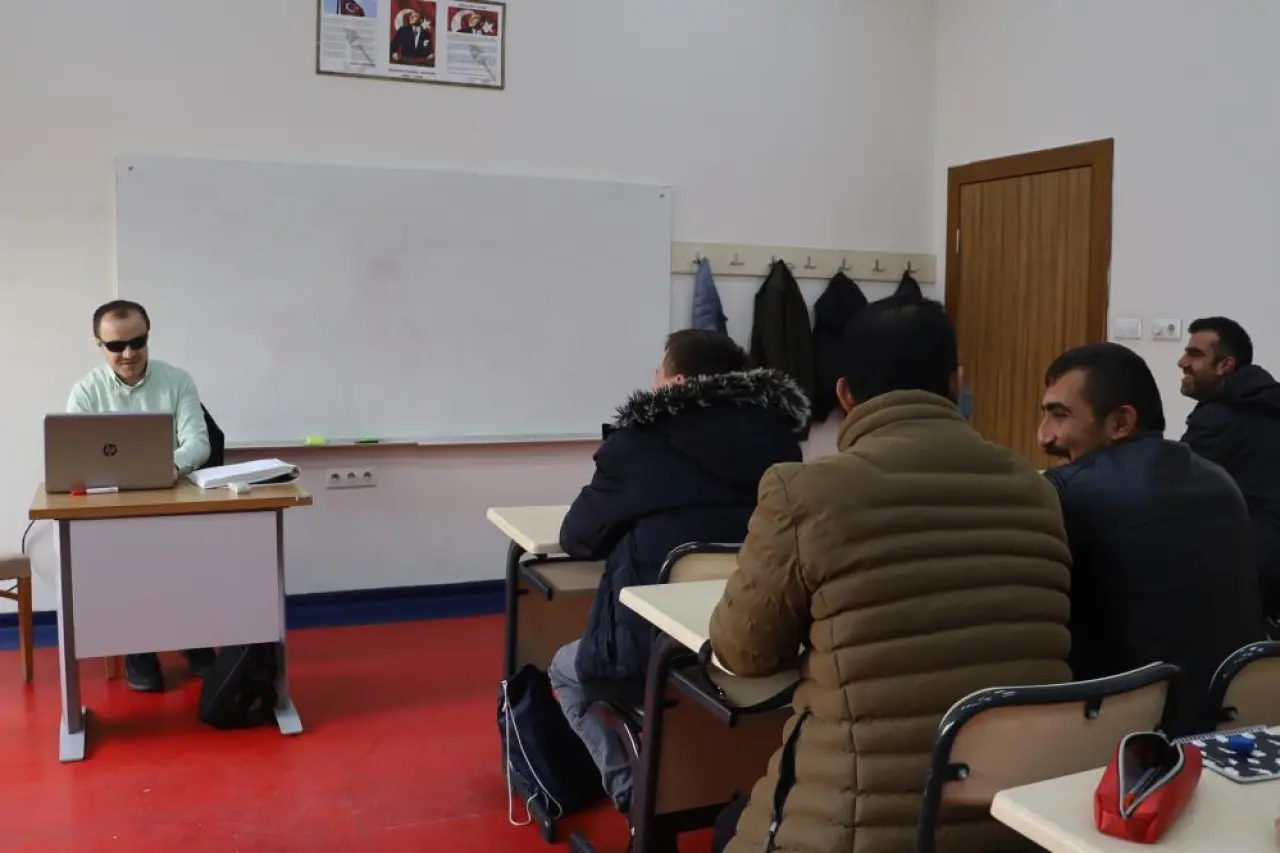 Sivas Halk Eğitim Merkezi Akşam Okulu’nda sınavlara hazırlık kursları başta olmak üzere birçok alanda ders veren iki öğretmen, hem mesleklerindeki azimleriyle örnek oluyor hem de görme engelli bireylere umut aşılıyor.