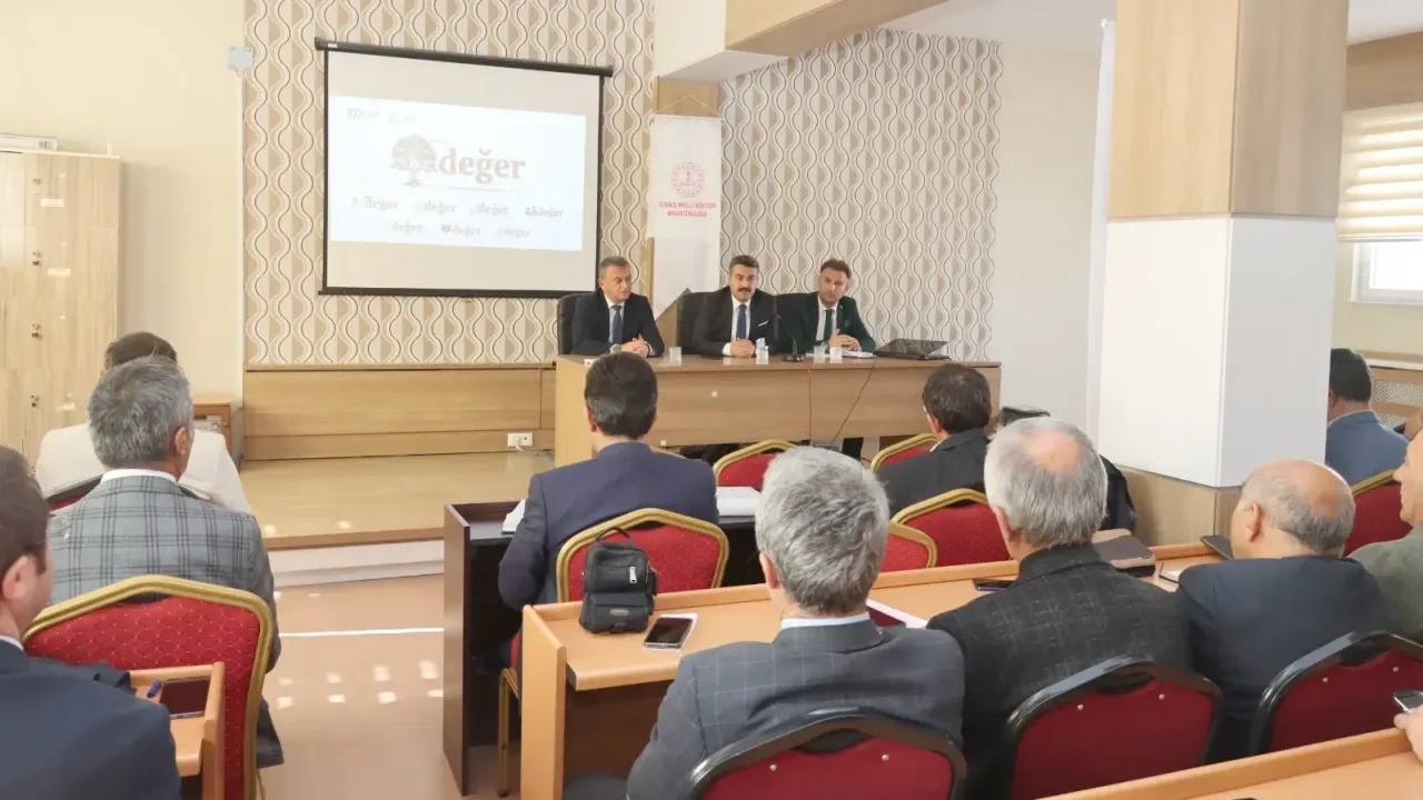 Sivas Millî Eğitim Müdürü Fatih Erdoğan, Merkez Özel Eğitim, Okul Öncesi ve İlkokul müdürleriyle “Sivas’a DEĞER Projesi”nin bilgilendirme ve tanıtım toplantısında bir araya geldi. Müdürlük toplantı salonunda gerçekleştirilen toplantıda, ilimizde eğitimde kaliteyi artırmak, fırsat eşitliğini güçlendirmek ve çağın gereklerine uygun bireyler yetiştirmek amacıyla 5 ana başlıkta oluşturulan proje sunuldu.