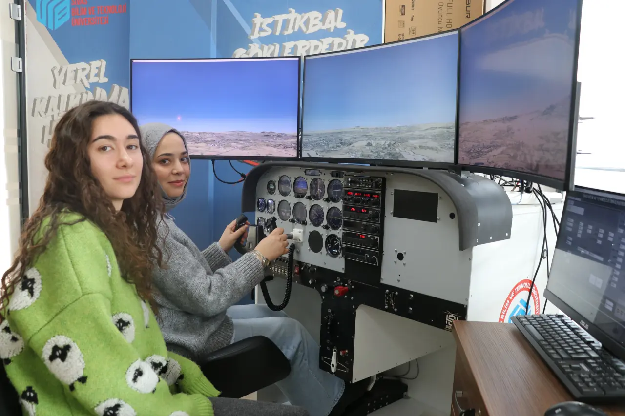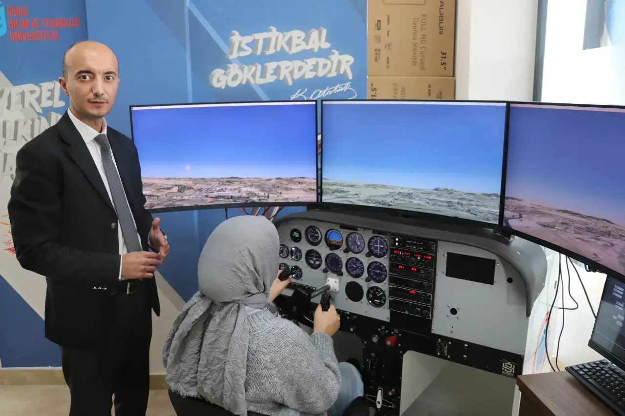 Sivas Bilim ve Teknik Üniversitesi’nde (SBTÜ) öğrenciler, birebir modellenmiş eğitim uçağı simülatörü ile uygulamalı uçuş eğitimi alıyor. Gerçek kokpit yapısına sahip simülatör, öğrencilere uçuşun temel aşamalarını deneyimleme imkânı sunarken, sektöre hazır bir şekilde mezun oluyorlar.