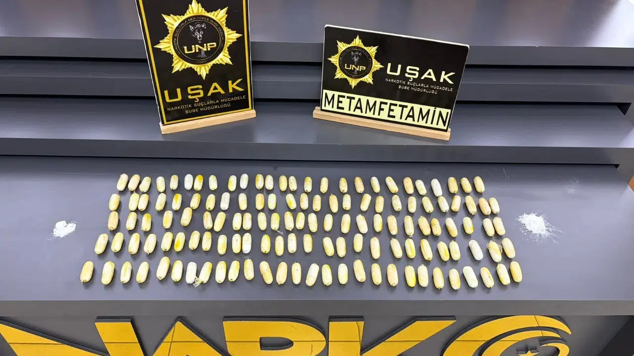 Uşak'ta uyuşturucu madde ticaretine yönelik yürütülen çalışmalar kapsamında, İran uyruklu A.S.Z. isimli şüphelinin midesinden yüklü miktarda metamfetamin ele geçirildi.