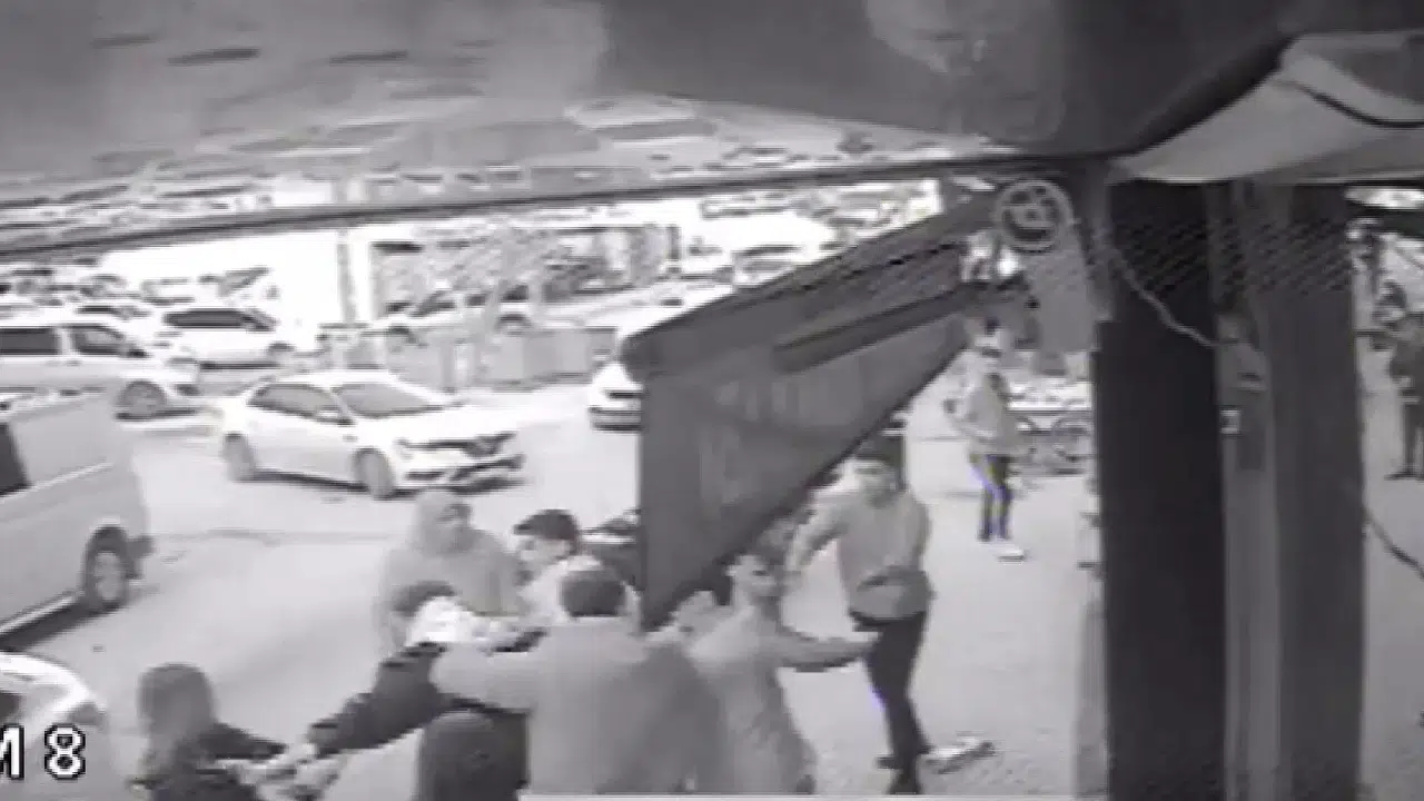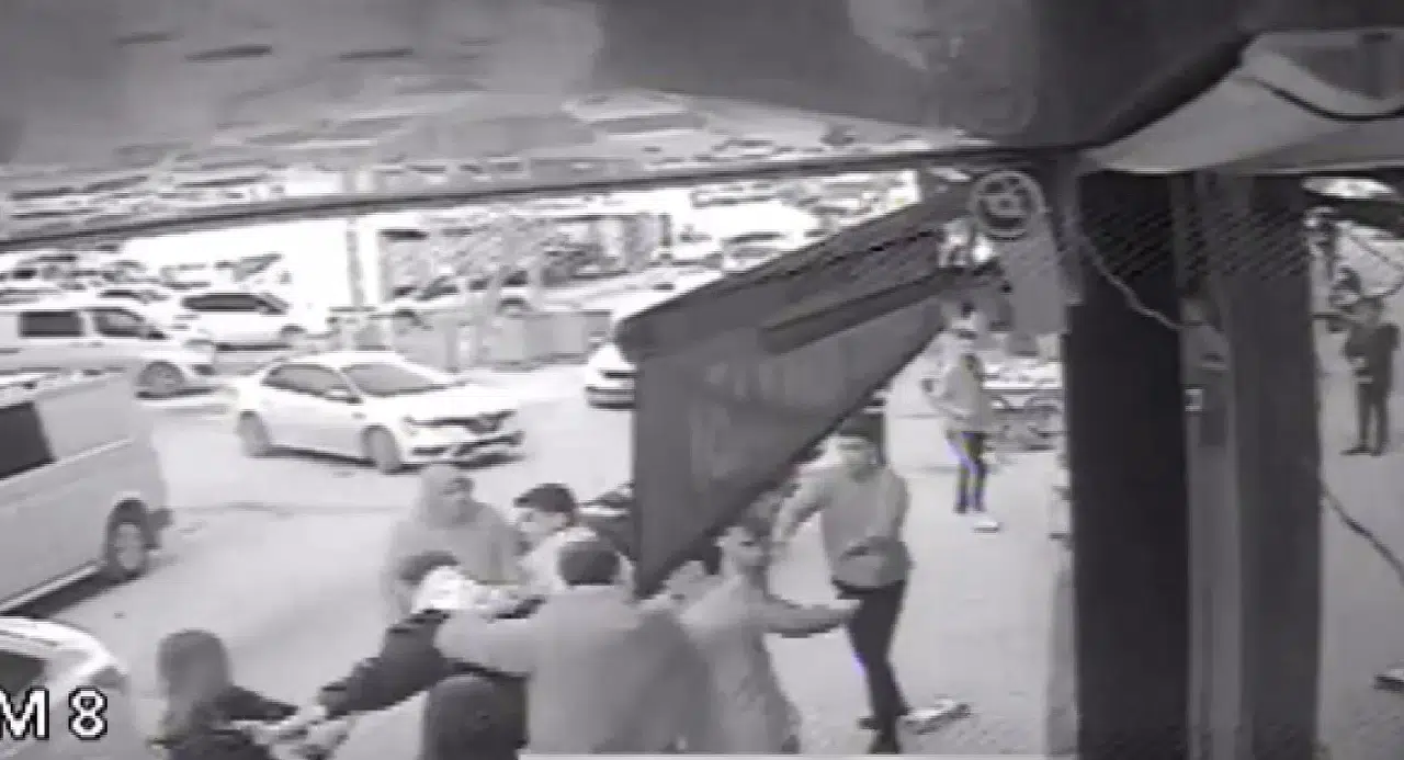 Bu esnada genç kızların yanında bulunan erkek yakını ile diğer şahıslar arasında tartışma çıktı. Kısa sürede büyüyen tartışma yumruklu ve tekmeli kavgaya dönüştü. Tekme ve yumrukların havada uçuştuğu kavgaya çevredeki vatandaşlar tarafından müdahale edildi. Yaşanan olay anları ise güvenlik kameralarına saniye saniye yansıdı.