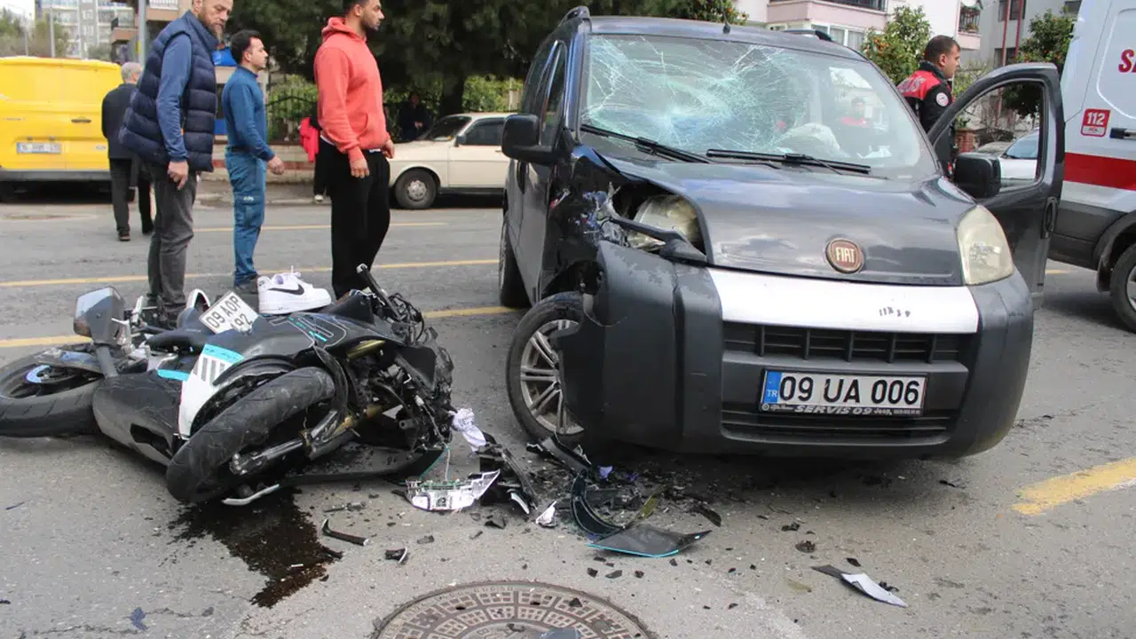 Aydın'ın Efeler ilçesinde ticari araçla motosikletin çarpışması sonucu meydana gelen kazada motosiklet sürücüsü ağır yaralandı.