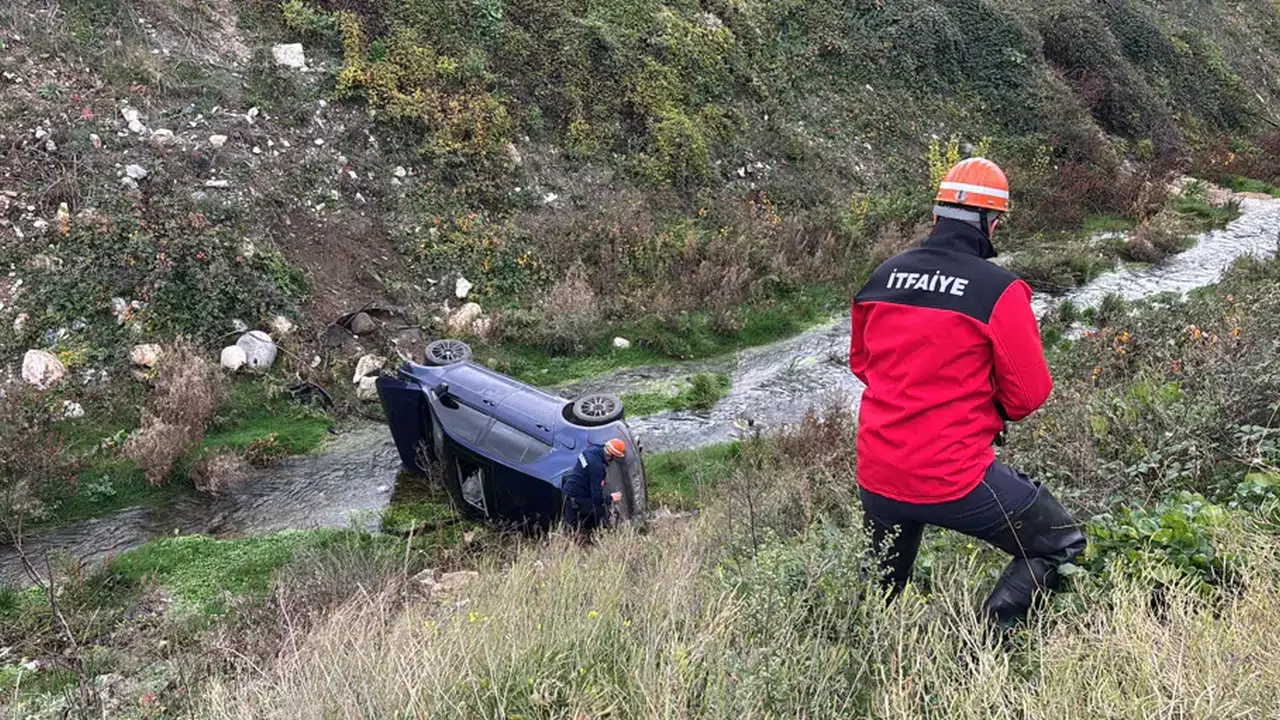 Bolu'nun Yukarısoku Mahallesi'nde kontrolden çıkan bir otomobil dereye uçtu. Meydana gelen kazada 2 kişi yaralandı.