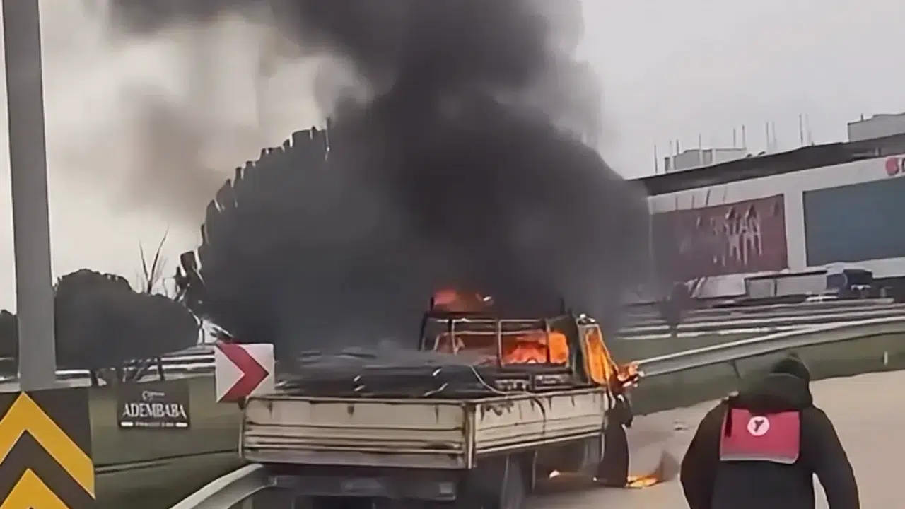 Bursa'da İzmir Yolu üzerinde Görükle dönüş kavşağında seyir halindeki bir kamyonette yangın çıktı. Edinilen bilgilere göre, İzmir Yolu'ndan Görükle dönüş sapağına ilerleyen kamyonet, henüz bilinmeyen bir nedenle aniden alev aldı.