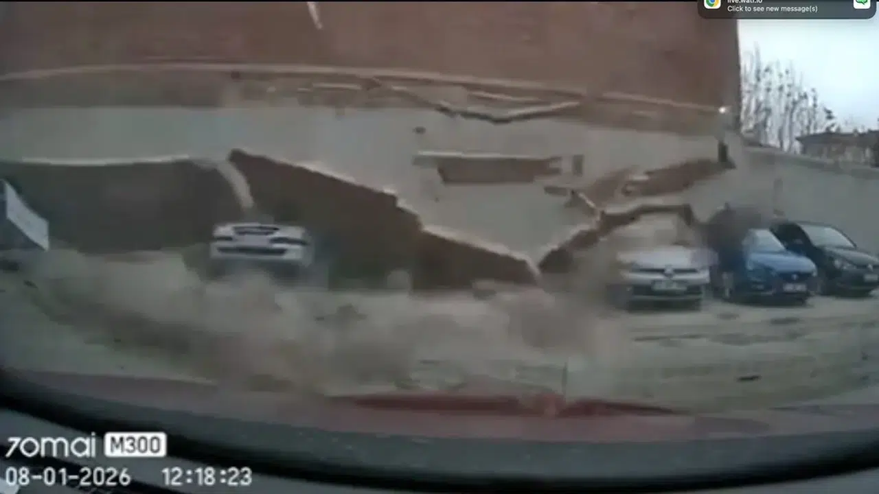 6 aracın zarar gördüğü ve şans eseri yaralananın olmadığı o anlar, otoparkta bulunan bir aracın kamerasına yansıdı. Ortaya çıkan görüntülerde, duvarın devrilme anı ve araçların enkazın altında kaldığı an yer alıyor.