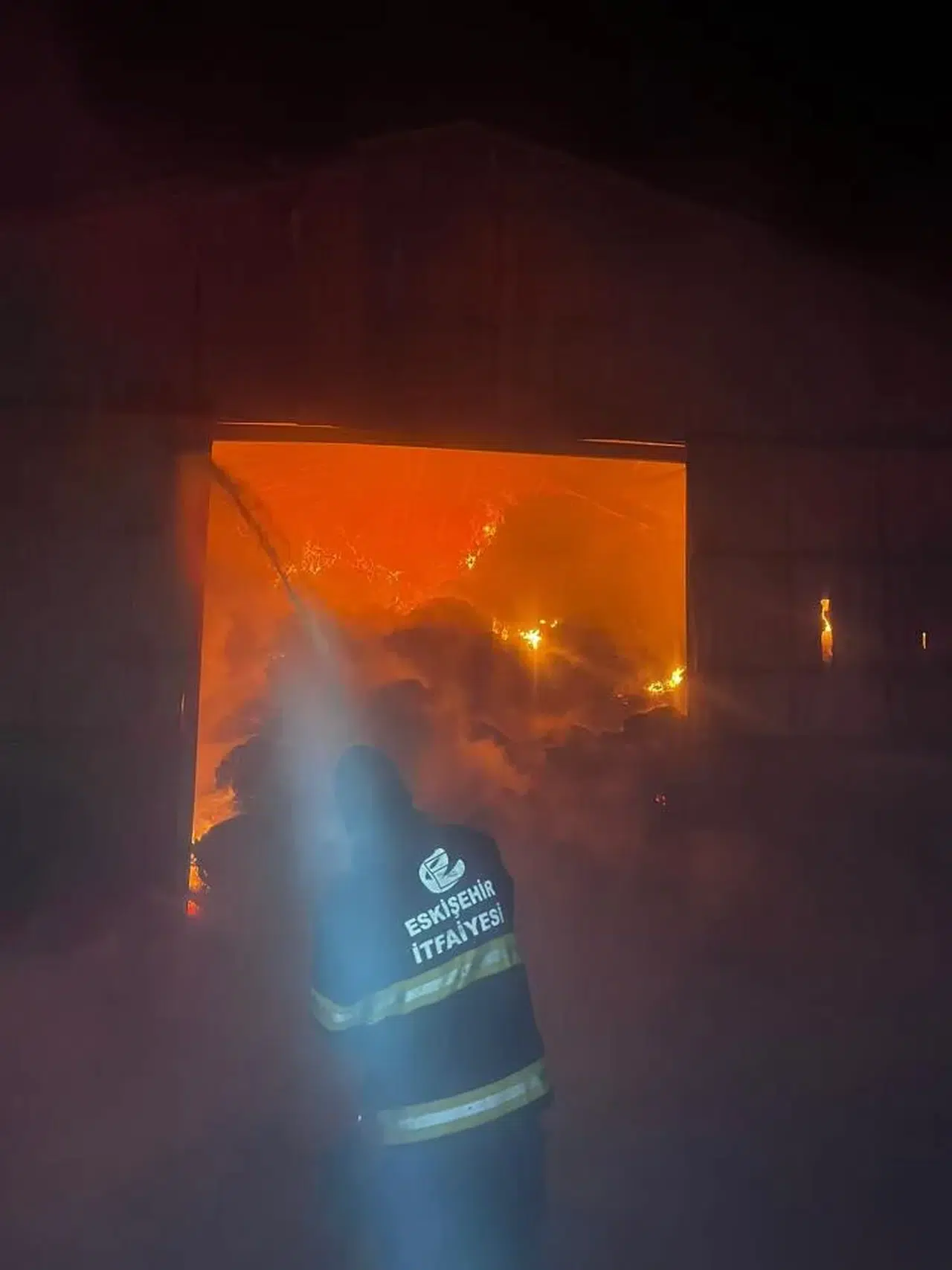 Eskişehir şehir merkezine 44 kilometre uzaklıkta olan Alpu ilçesinde bir çiftlikte gece geç saatlerde yangın çıktı. Alevlerin saman balyalarını tutuşturması sonrasında büyüyen alevler çiftliği kısa sürede sardı.