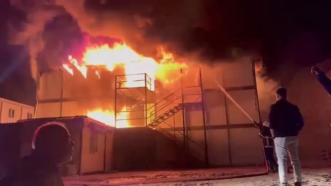 Hatay'da inşaat işçilerinin kaldığı konteyner yatakhane alevlere teslim olarak yandı. Yaralananın olmadığı yangın, itfaiye ekipleri tarafından söndürüldü. Yangın, Belen ilçesi Halilbey Mahallesi'nde şantiye alanında yaşandı. Şantiyede çıkan yangında, inşaat işçilerinin kaldığı konteyner yatakhane alevlere teslim oldu.