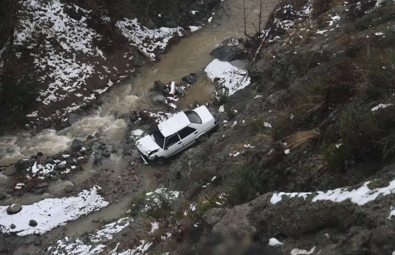 Hatay'da kayganlaşan zeminde sürücüsünün kontrolünü kaybettiği otomobil, metrelerce uçurumdan dereye uçtu. Dereye uçan otomobil sürücüsü, son anda kendini araçtan atarak kurtardı.