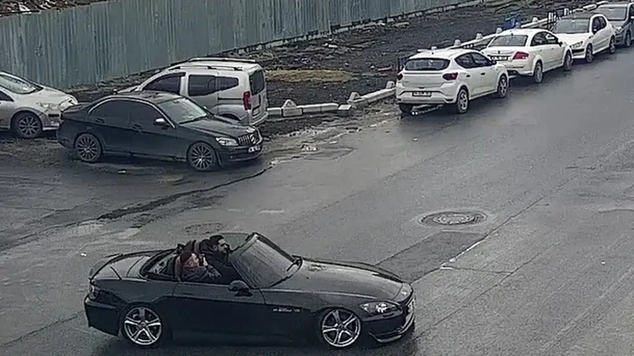 Olay, 27 Aralık öğle saatlerinde Bahçelievler Yenibosna Mahallesi 29 Ekim Caddesi'nde yaşandı. Edinilen bilgiye göre, 61 BH 200 plakalı üstü açık otomobil sürücüsü, drift atmaya başladı. Trafiğin yoğun olduğu saatte sürücünün drift attığı, iş yerinin güvenlik kameralarına yansıdı.