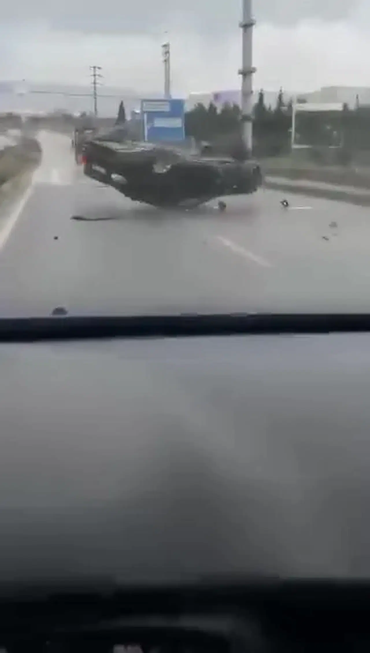 Kocaeli'nin Çayırova ilçesinde yağışlı havada makas atarak ilerleyen otomobil kontrolden çıkarak takla attı. O anlar saniye saniye cep telefonu kamerasına da yansıdı.