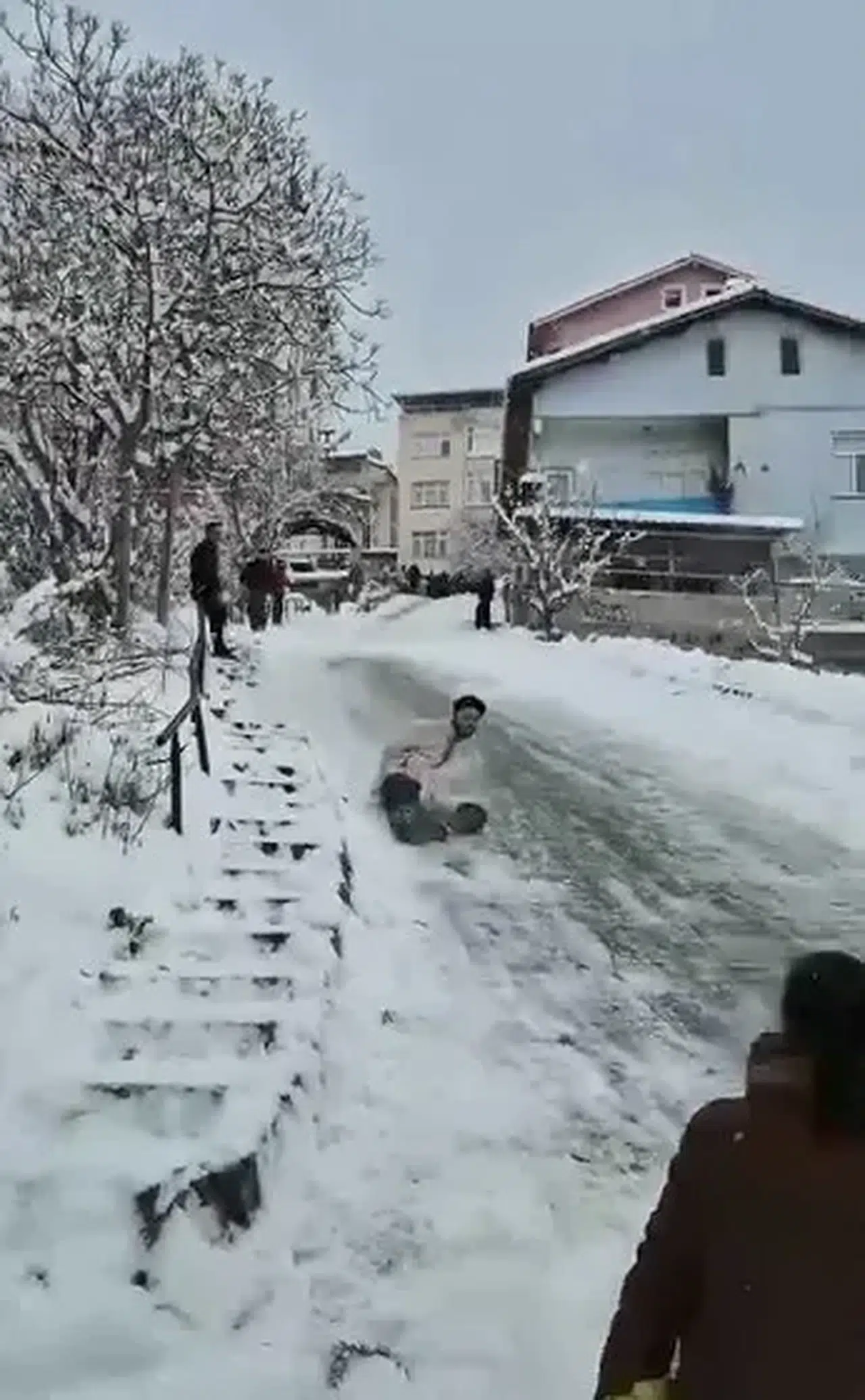 Niksar ilçesinde karlı yolda kayan gençler tehlikeye davetiye çıkardı. Yoğun kar yağışı sonrası kayganlaşan yolda poşetlerle kayan gençler, hızlarını alamayınca kontrolden çıkarak bahçeye uçtu. O anlar, çevrede bulunan bir vatandaş tarafından cep telefonu kamerasıyla saniye saniye kaydedildi.