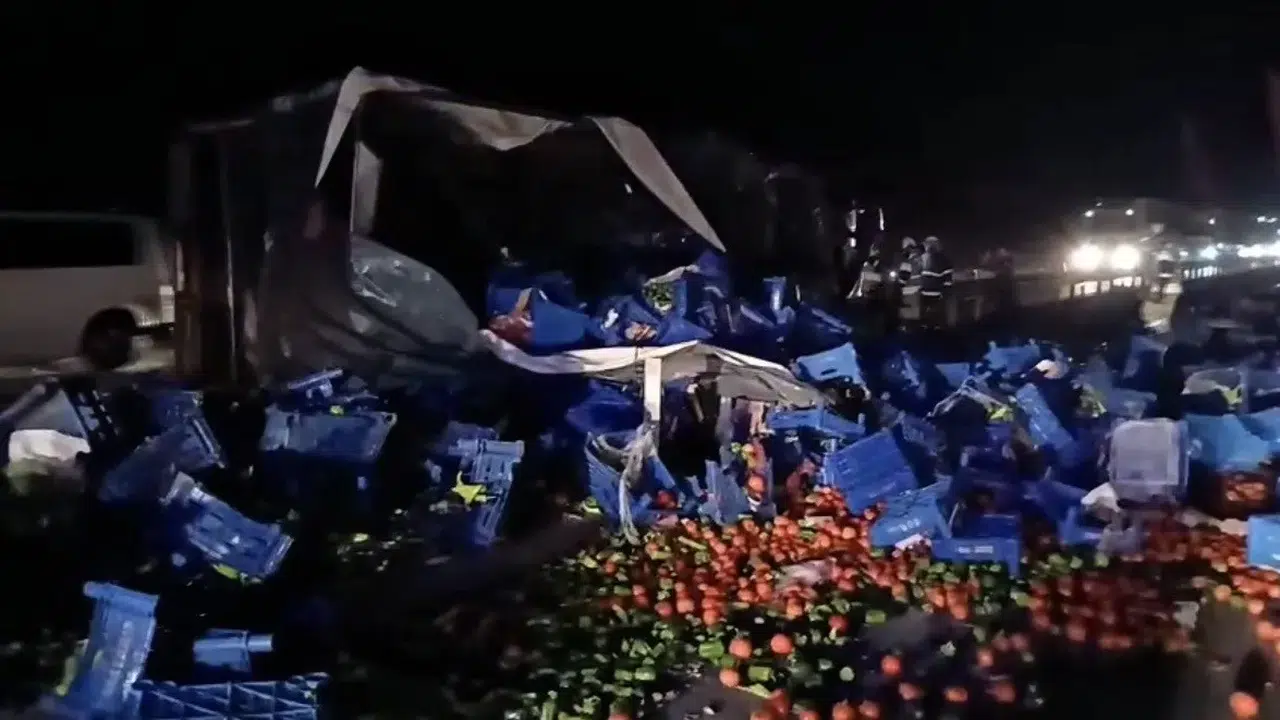 Edinilen bilgilere göre, 07 TBZ 44 plakalı tır, yağış nedeniyle sürücüsünün direksiyon hâkimiyetini kaybetmesi sonucu yan yattı. Kazayla birlikte tırın dorsesinde bulunan meyveler karayoluna saçıldı. Kazada sürücünün yara almadığı öğrenilirken, olay bölgede kısa süreli paniğe neden oldu.