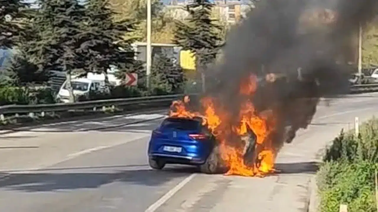 Henüz belirlenemeyen nedenle başlayan yangın kısa sürede tüm aracı sardı. Otomobil kısa sürede alev topuna döndü.