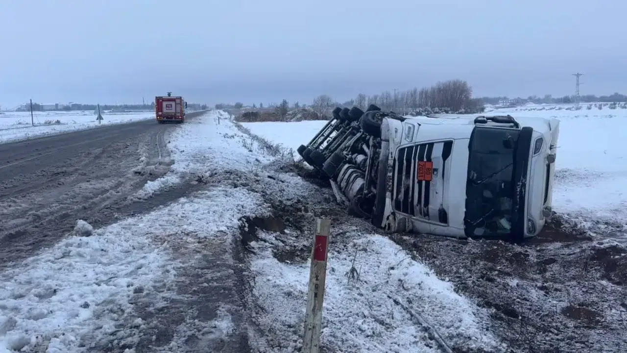 Şanlıurfa'da kar ve buzlanma nedeniyle kontrolden çıkarak devrilen asit yüklü tankerin sürücüsü yaralandı. Edinilen bilgiye göre kaza, Şanlıurfa'nın Suruç ilçesine bağlı kırsal Kızılhöyük Mahallesi yakınlarında yaşandı.