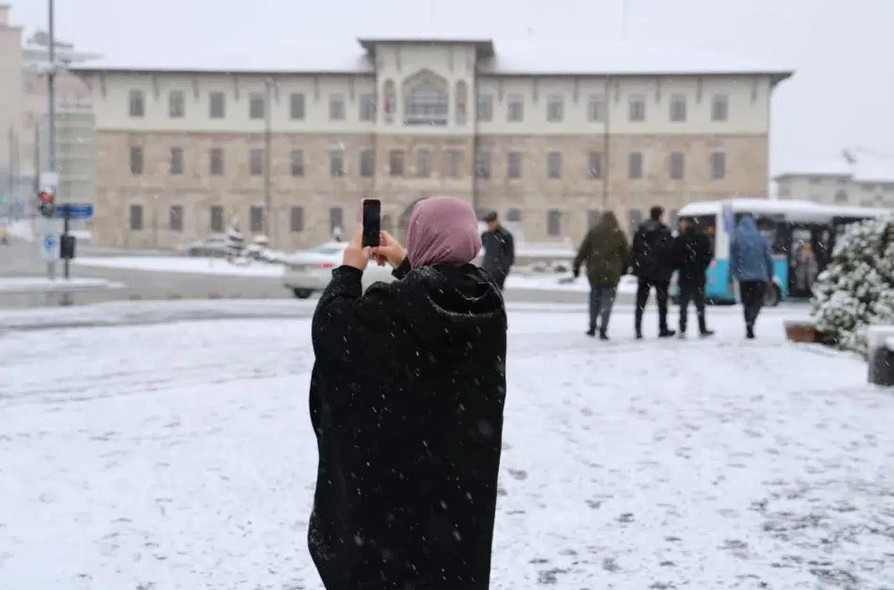 Meteoroloji Genel Müdürlüğü’nün sarı kod ile uyardığı Sivas’ta beklenen kar yağdı. Dün akşam saatlerinde başlayan yağmur, yüksek kesimlerde yerini kara bıraktı. Gecenin ilerleyen saatlerinde kent merkezinde de başlayan kar yağışı şehri beyaza bürüdü. İçerisinde Selçuklu, Osmanlı ve Cumhuriyet dönemi yapılarını barındıran Tarihi Kent Meydanı, yağan kar ile birlikte eşsiz görüntüler oluşturdu. Yağan karın tadını çıkarmak isteyen vatandaşlar, fotoğraf çektirdi.