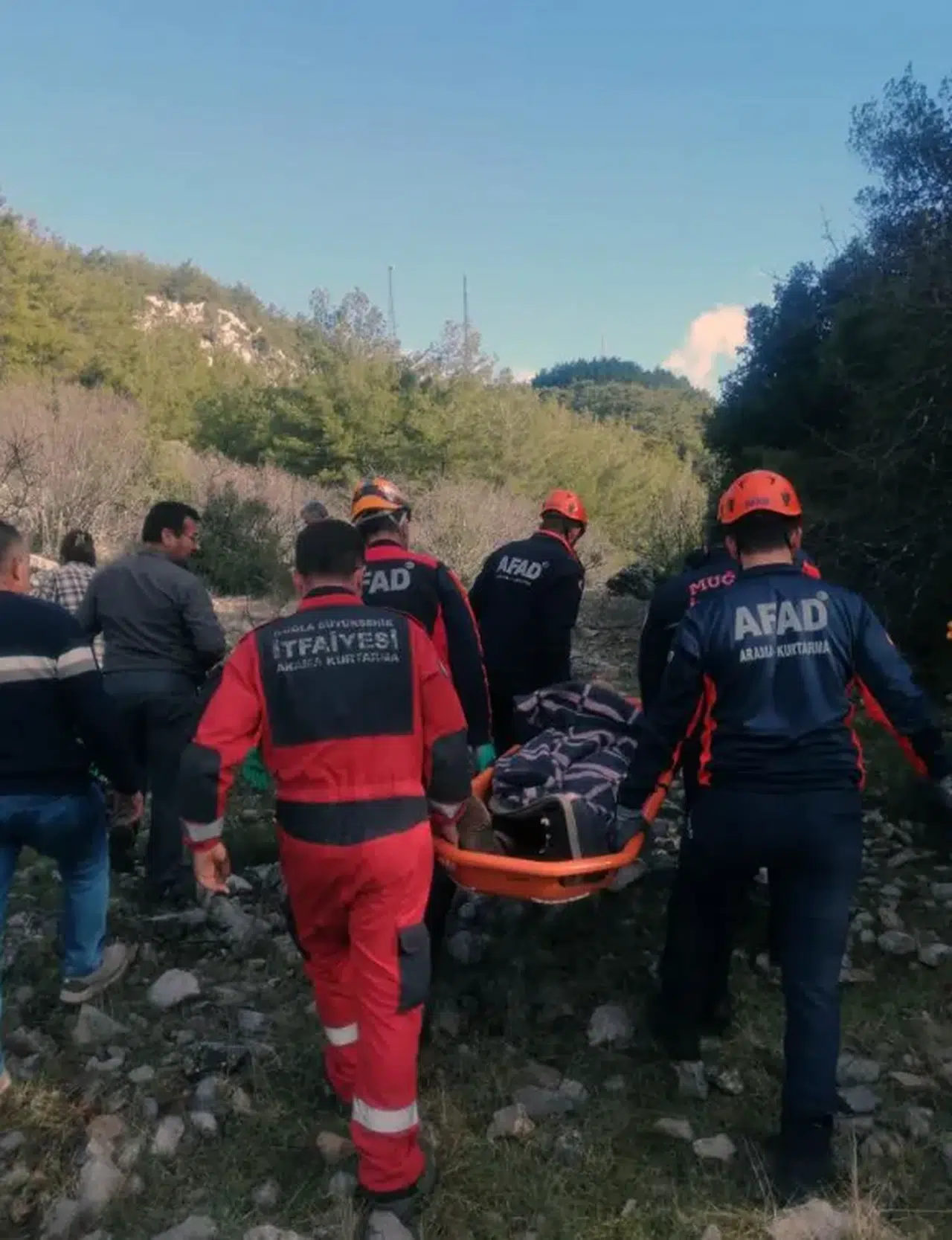 Yakınlarının 112 Acil Çağrı Merkezine bilgi vermesi üzerine bölgeye 112 ambulans, Muğla Büyükşehir Belediyesi Menteşe İtfaiye ve AFAD ekipleri sevk edildi. Kayalıklardan düşen 72 yaşında Duran Orhan isimli vatandaşa ilk müdahale yakınları tarafından yapılırken, olay yerine gelen AFAD ve İtfaiye ekiplerince sedyeye alındı.