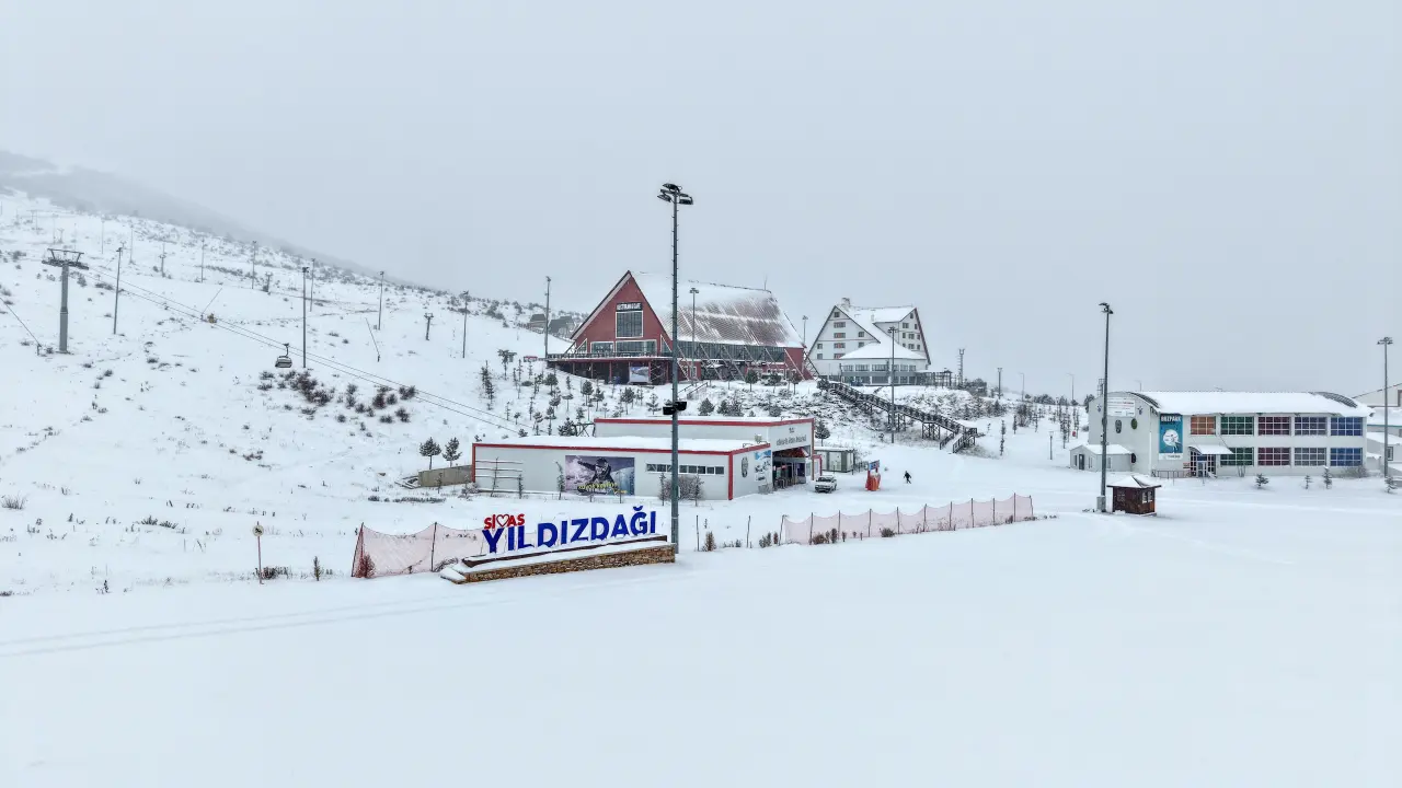 Sivas’taki Yıldız Dağı Kış Sporları ve Kayak Merkezi’nde kar kalınlığı 15 santimetreye ulaştı.