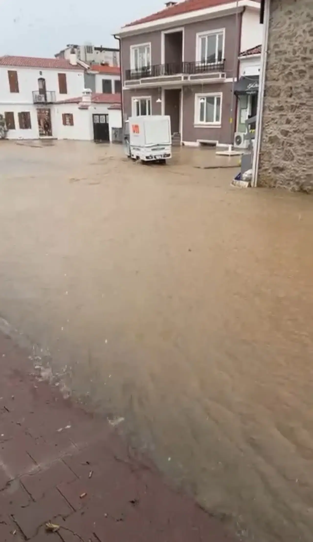 Çanakkale'nin Kuzey Ege Denizi'ndeki Bozcaada ilçesinde sağanak yağış nedeniyle cadde ve sokaklar göle döndü.