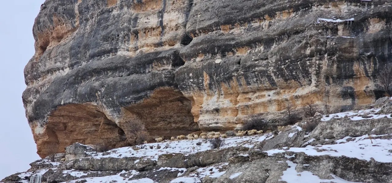 Malatya'da etkili olan yoğun kar sonrası üreticiler, hayvanlarını bin 600 rakımdaki kayalıklara çıkardı.