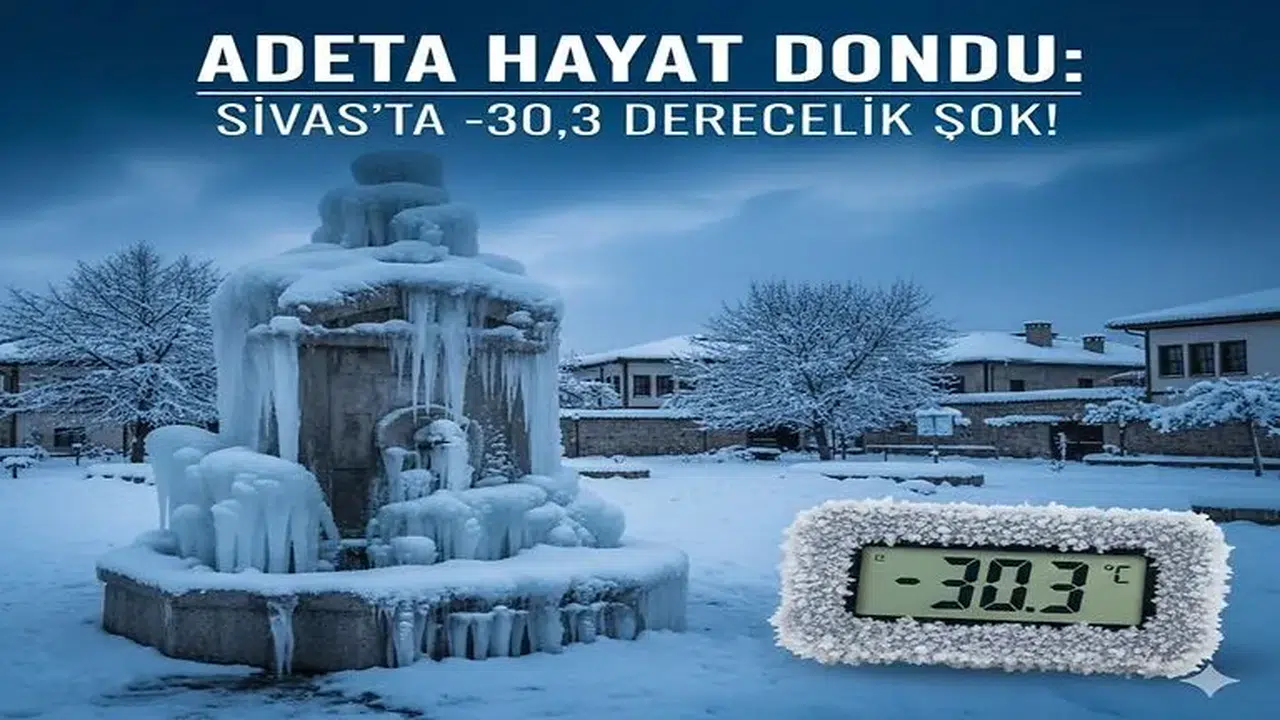 Meteoroloji verilerine göre, Sivas'ın Şarkışla ilçesi geceyi -30,3 dereceyle kapatarak bölgenin en soğuk noktalarından biri oldu. Sivas şehir merkezinde ise termometreler -19 dereceyi gördü. Şehir genelinde araçlar dondu, çatılarda dev buz sarkıtları oluştu ve yollar buz pistine döndü.