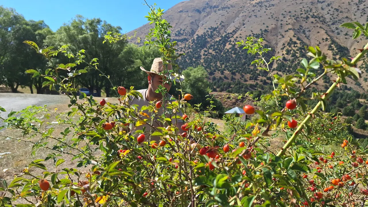 “Kuşburnu sezonumuz başladı. Ağaçlarımızda çok güzel duruyorlar. Topluyoruz, olgunlaşmamış olanları güneşte bekletiyoruz. Tandırda ateşte pişiriyoruz, eziyoruz, sonra katılaşana kadar kaynatıp reçelini ve marmelatını yapıyoruz. Sıcak sıcak kavanozlara koyup kışın tüketiyoruz. Kuşburnu her derde derman, bolca tüketmek lazım.”