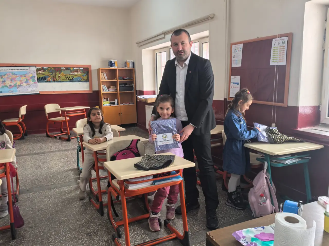 Karne hediyelerini alan öğrenciler, veliler ve öğretmenler, Başkan Başer'e teşekkür ederken, etkinlik renkli görüntülere sahne oldu.