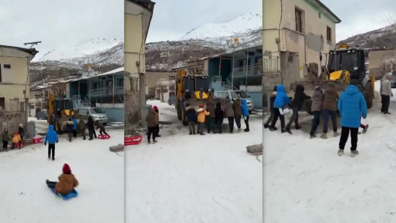 Tuzlama çalışmasının başlamasıyla birlikte kızak keyfinin sona ereceğini anlayan çocuklar, kızak yollarını korumak için kepçenin önünde durarak çalışmayı engellemeye çalıştı. Kepçe operatörü ise yol güvenliği açısından tuzlama yapılmasının gerekli olduğunu anlatarak çocukları ikna etmeye çalıştı.