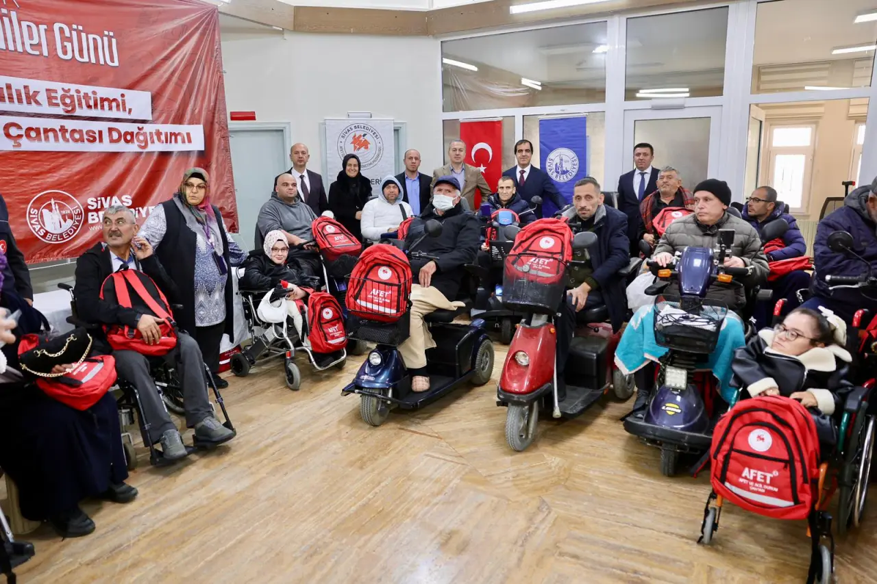 Sivas Belediyesi, 3 Aralık Dünya Engelliler Günü dolayısıyla önemli bir farkındalık programına imza attı. Afet İşleri ve Risk Yönetimi Müdürlüğü ile Kültür, Sanat ve Sosyal İşler Müdürlüğü koordinesinde düzenlenen “Afet Farkındalık Eğitimi ve Afet ve Acil Durum Çantası Dağıtım Töreni”, Belediye Başkanı Dr. Adem Uzun’un katılımıyla gerçekleştirildi.