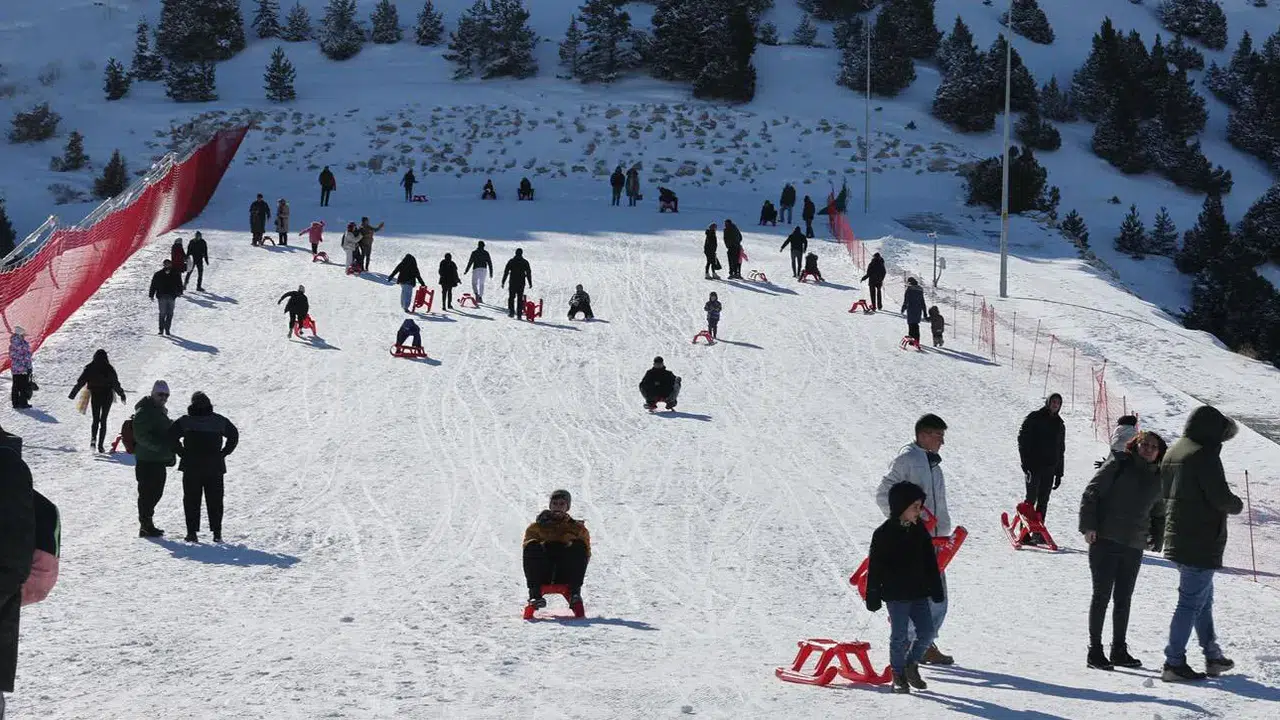 Erzincan’da etkili olan kar yağışı ve tatili fırsat bilen çocuklar Ergan Dağı Kayak Merkezi’ne akın etti. Aileleriyle birlikte Ergan’a gelen çocuklar, karın tadını kızakla doyasıya çıkardı.