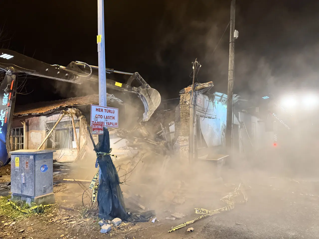 Ekipler, metruk evin bahçedeki tek katlı müstakil evin üzerine çökme ihtimalini değerlendirerek, evdeki 5 kişiyi tedbir amacıyla tahliye etti. Yaralananın olmadığı olayda, bölgede güvenlik önlemi alındı. Çatısı çöken ev, ekipler tarafından kontrollü şekilde yıkıldı.
