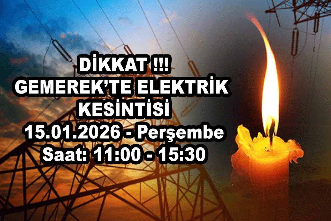 Sivas’ın Gemerek ilçesinde bakım çalışmaları nedeniyle yarın elektrik kesintisi yapılacağı bildirildi. Çamlıbel Elektrik Dağıtım A.Ş. tarafından yapılan açıklamaya göre, 15 Ocak 2026 Perşembe günü bazı mahallelerde planlı elektrik kesintisi uygulanacak.