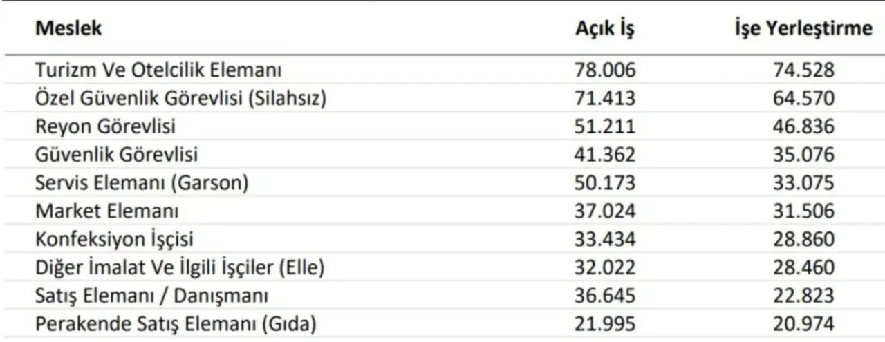 Bu durum, söz konusu mesleklerde ciddi işgücü talebi olduğunu ve sektörün bu açığı kapatmakta zorlandığını gösteriyor.