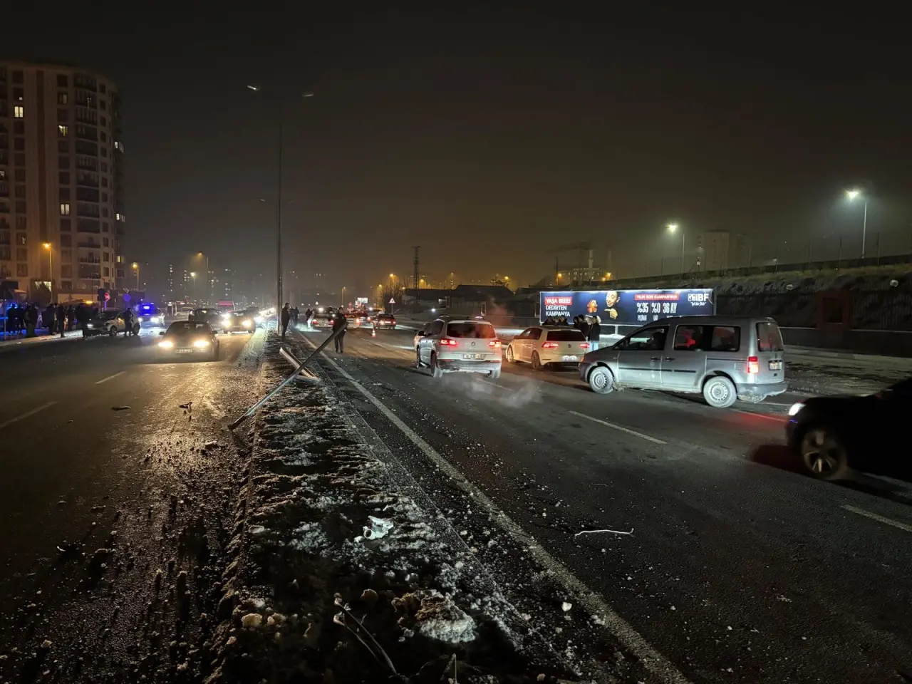 Kayseri Melikgazi’de Aydınlatma Direği Devrildi, Karanlık Yolda Kazalar Birbirini İzledi