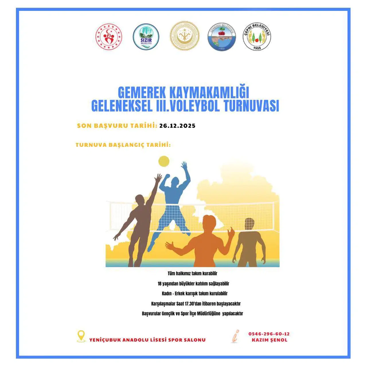 Gemerek’te kurumlar arası birlik, beraberlik ve kaynaşmayı güçlendirmek amacıyla düzenlenen Gemerek Kaymakamlığı Kurumlar Arası Geleneksel 3. Voleybol Turnuvası başlıyor.