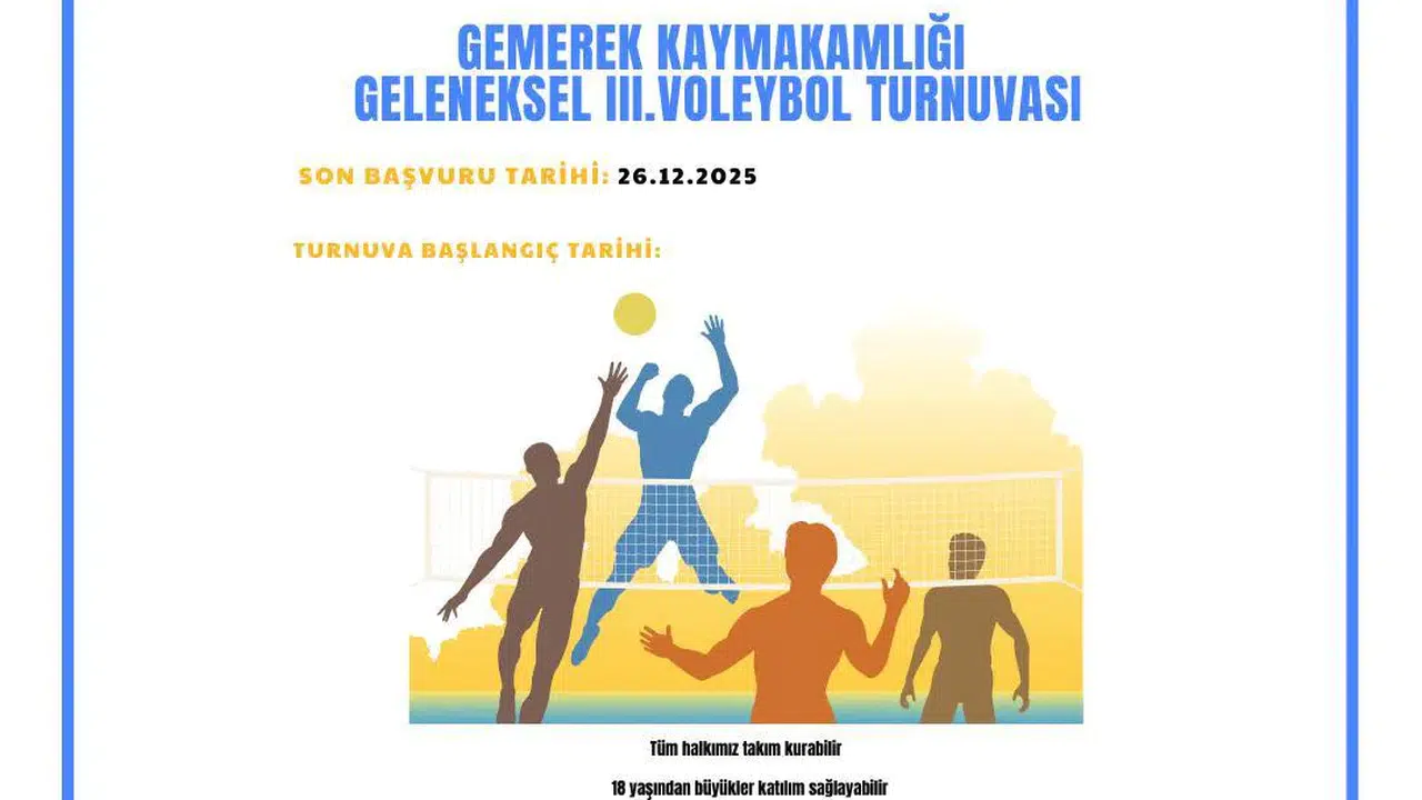 Turnuvaya katılmak isteyen kurumların son başvuru tarihi 26.12.2025 olarak açıklandı. Başvurular, Gemerek Gençlik ve Spor İlçe Müdürlüğü’ne yapılacak.