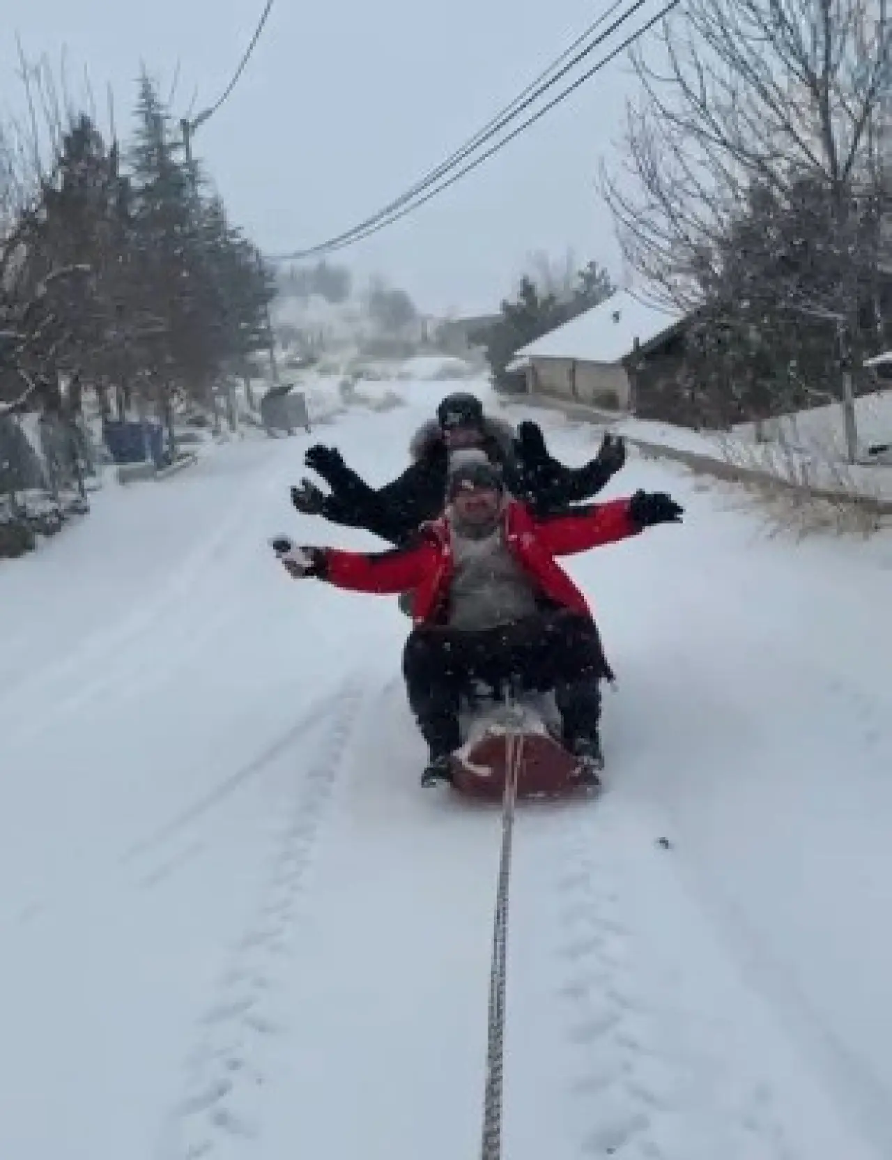 Malatya'da kent genelinde etkisini sürdüren kar yağışı, hayatı olumsuz etkiliyor. Yoğun kar yağışının etkisi altındaki kentte özellikle ulaşımda aksamalar yaşanırken Akçadağ ilçesi Kozluca Mahallesi'nde, traktör arkasına bağlanan kütük üzerinde karda sörf yapan gençler ise dakikalar süren heyecan dolu bir yolculukla karın tadını çıkardı.