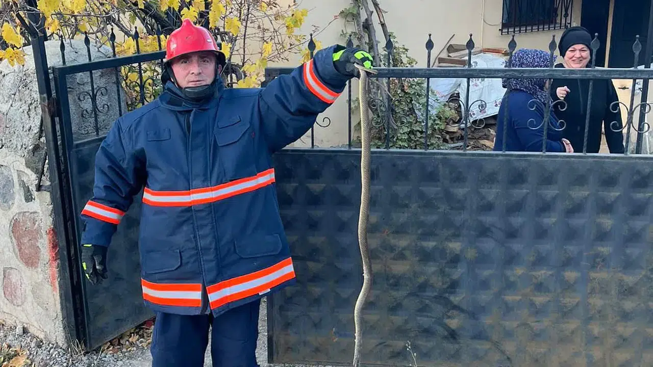 Ev sahibinin ihbarı üzerine olay yerine gelen ekipler, yılanı güvenli bir şekilde yakalayarak doğal yaşam alanına saldı.