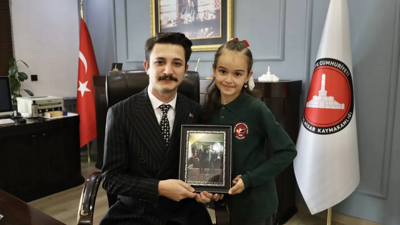 Ziyarette öğrenciler, 10 Kasım programı davetiyelerini Kaymakam Kukuş’a takdim etti. Ayrıca günün anlam ve önemine uygun olarak, Gazi Mustafa Kemal Atatürk’ü yan yana gösteren anlamlı bir çerçeve hediye ettiler.