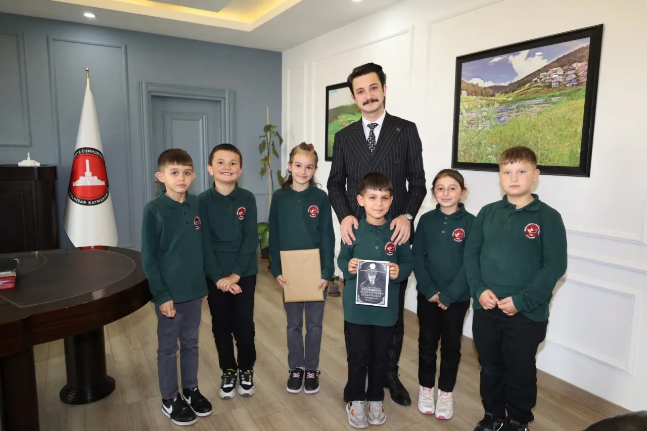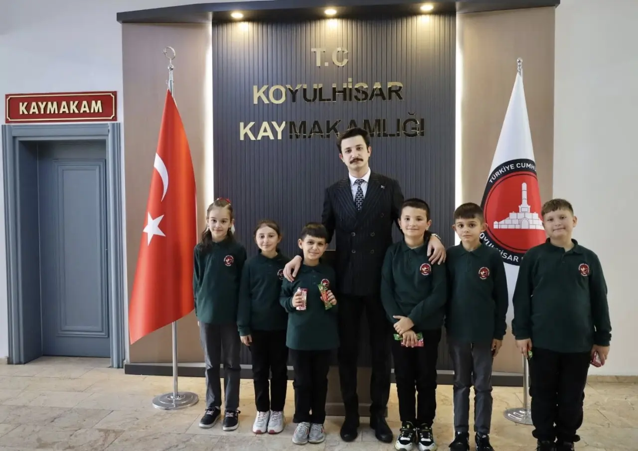 10 Kasım Atatürk’ü Anma Günü programı öncesinde, Münire Mustafa Aydoğdu Yatılı Bölge İlkokulu öğrencileri ve öğretmenleri, Koyulhisar Kaymakamı Muhammed Hasan Kukuş’u makamında ziyaret etti.