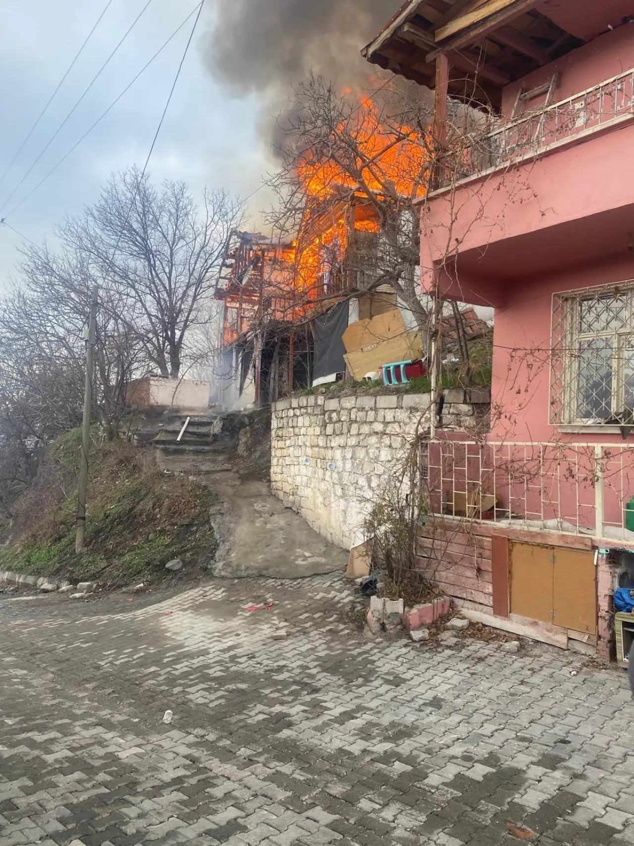İhbar üzerine olay yerine itfaiye, polis ve 112 sağlık ekipleri sevk edildi. İtfaiye ekiplerinin müdahalesiyle yangın kontrol altına alınarak söndürüldü. Yangında ev tamamen yanarak kullanılamaz hale geldi. Olayda can kaybı ya da yaralanma yaşanmazken, yangınla ilgili inceleme başlatıldı.