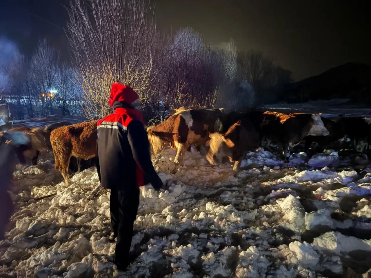 Dondurucu soğuk ve karla kaplı bölgede yürütülen çalışmalarda, tırda bulunan 45 büyükbaş hayvan çevre köylerdeki uygun ahırlara nakledilerek donma riskinden kurtarıldı. Kazada 1 hayvan telef olurken, 2 hayvan yaralandı.